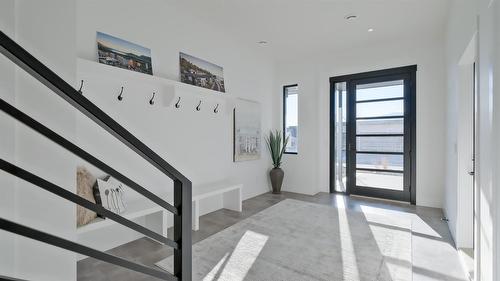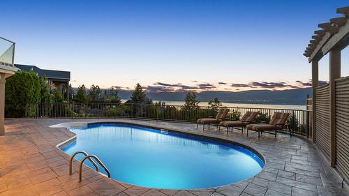 Carved into the summit of Knox Mountain, this custom smart home in Kelowna’s prestigious gated ...